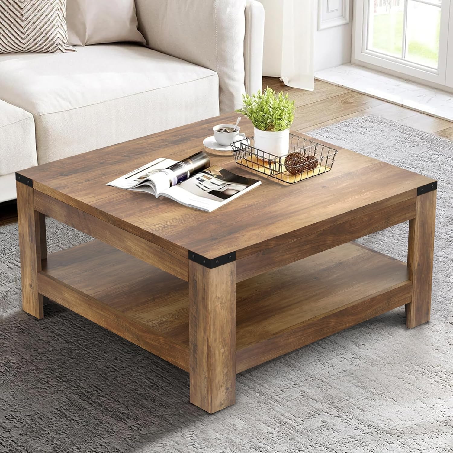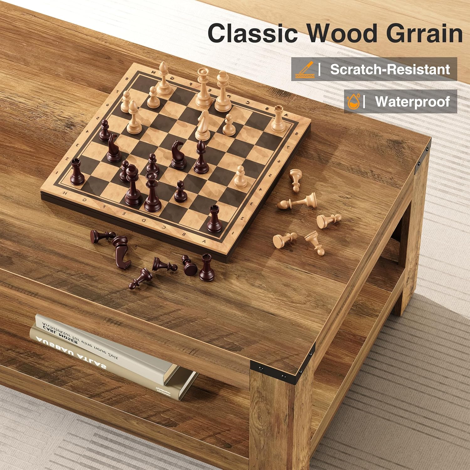 Farmhouse Coffee Table, 47.2" Modern Rustic Wooden Center Table with Storage, Rectangle Living Room Tables, 2-Tier Industrial Cocktail Tea Table for Living Room