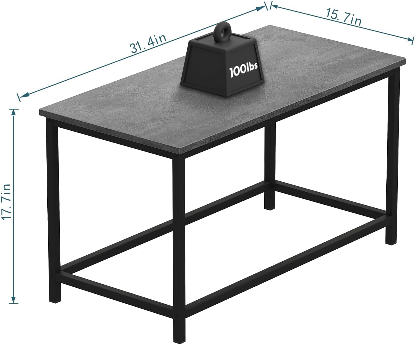 SAYGOER Small Rectangular Coffee Table Simple Modern Open Design Minimalist Center Table for Living Room Small Spaces, Easy Assembly, 31.5 x 15.7 x 17.7, Gray Black