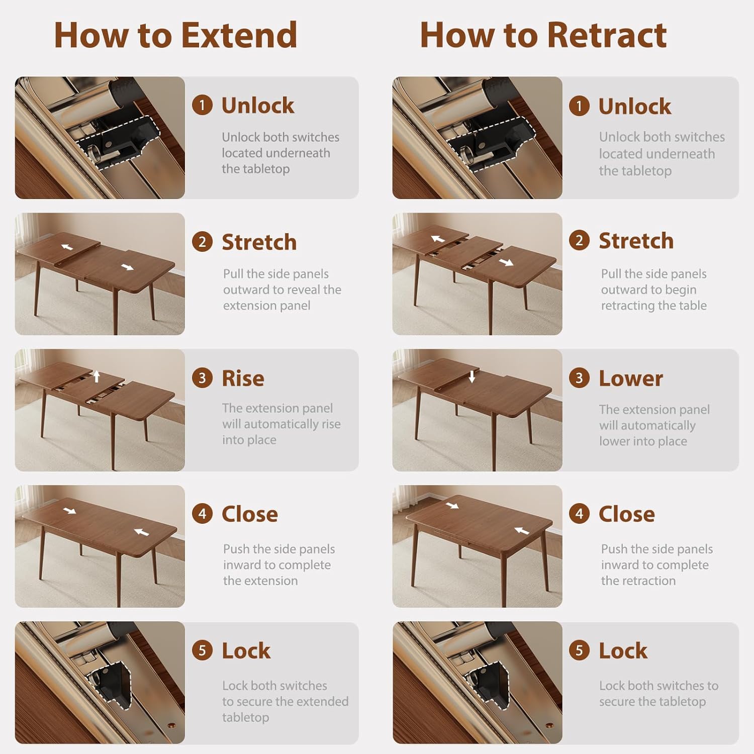 Solid Wood Extendable Dining Table for 4-8 People